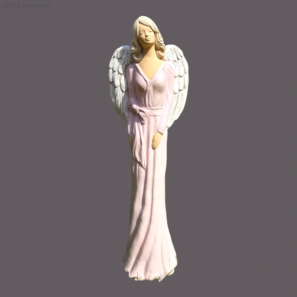 Sádrová andělka v jemně růžových perleťových šatech s andělskými křídly působí jako poselka lásky a něhy. Její klidný výraz a ladný postoj přinášejí do domova harmonii, soucit a jemnou radost.