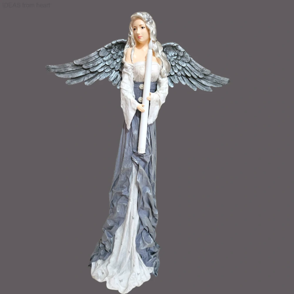 - Andělka Lumina 77 cm s LED svíčkou se stříbrnou patinou - Powertex