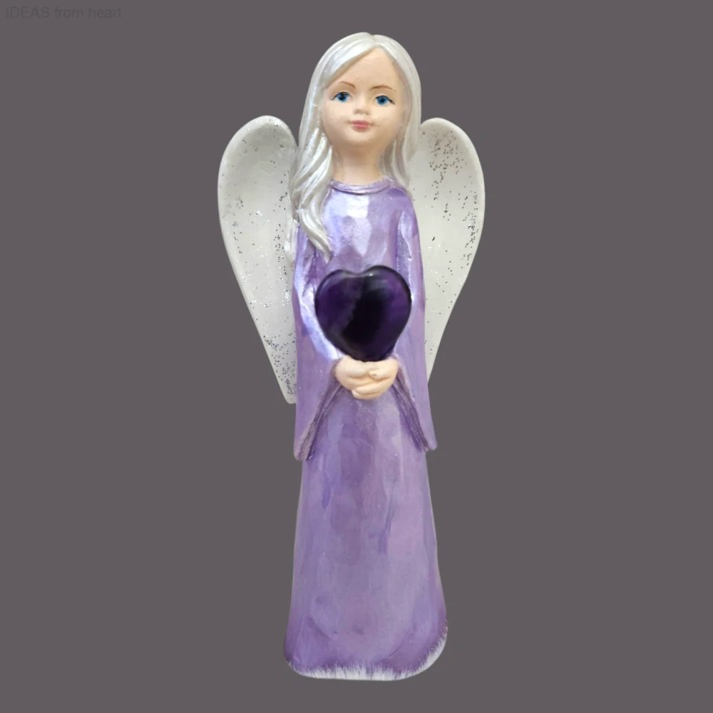 Andělka s ametystovým srdcem – ručně malovaná soška pro klid a duchovní ochranu 15,5 cm - sádra