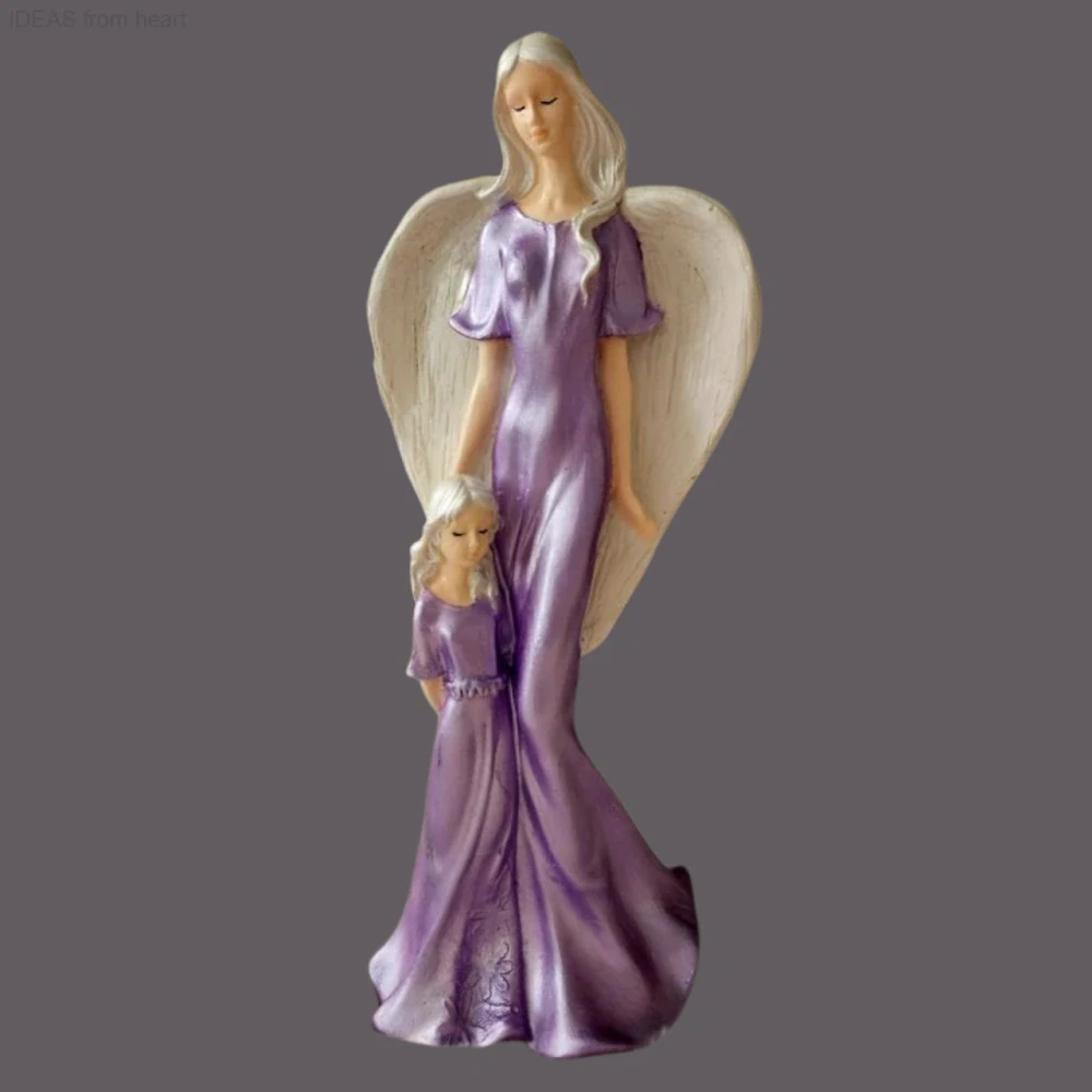 - Andělka s holčičkou 35 cm - fialová - sádra