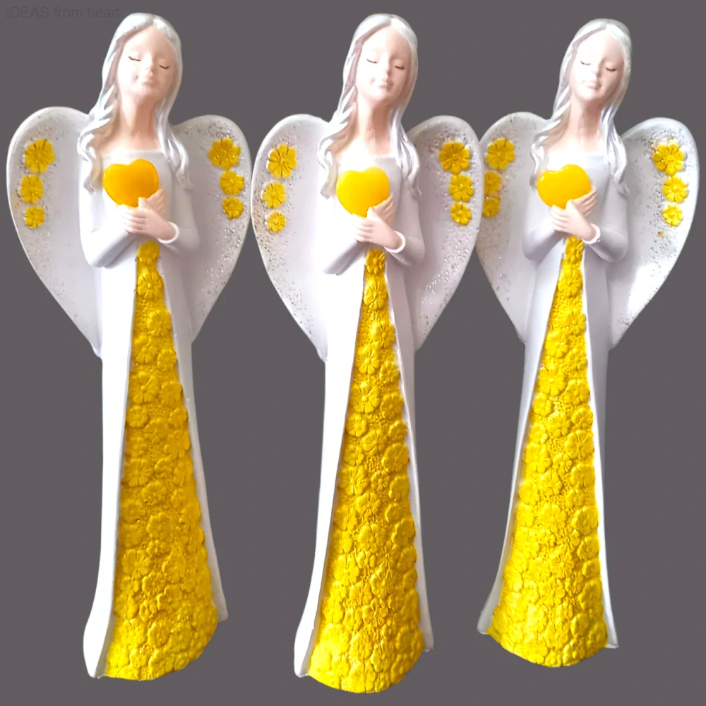 Sádrová Andělka držící minerál CITRÍN tvaru srdce.