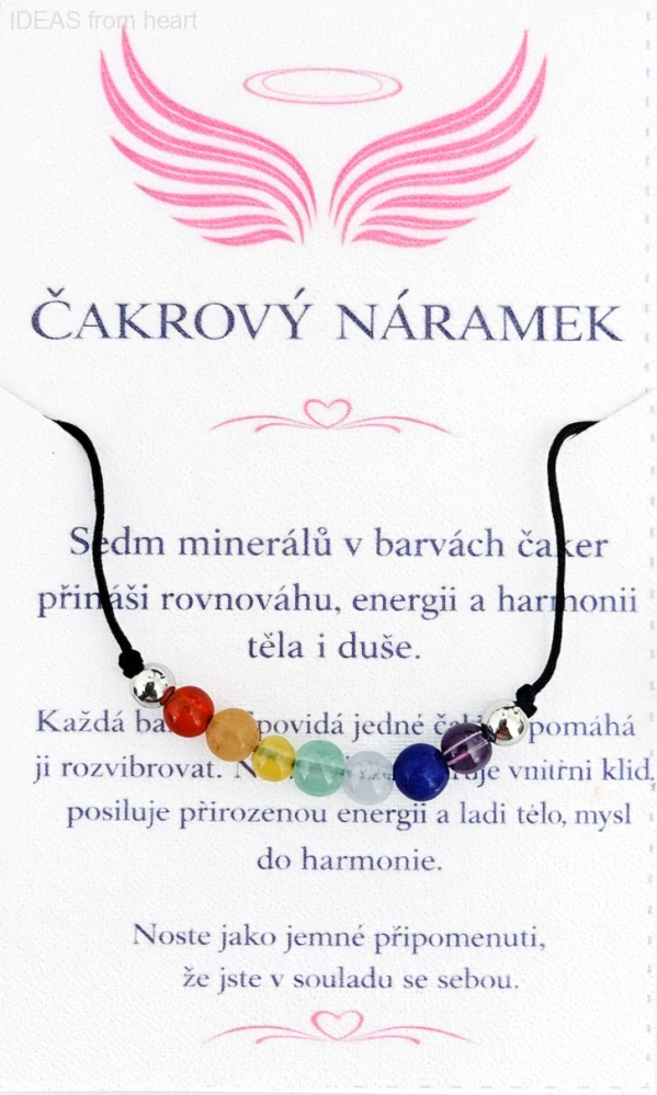 Každý korálek představuje jednu z hlavních čaker – energetických center těla, která ovlivňují naši psychickou i fyzickou pohodu.
