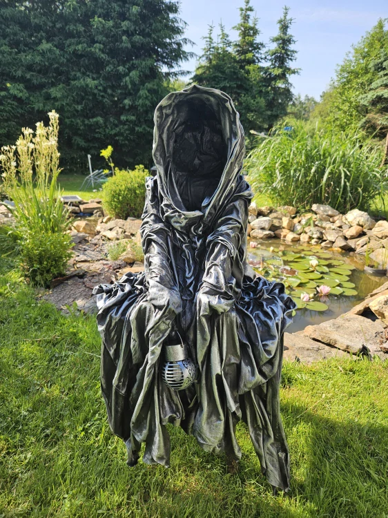 Tajemná postava zahalená v kápi, sedící v klidu, jako by naslouchala šepotu větru… Tento ručně vytvořený Sedící Duch, známý také jako Poustevník, je víc než jen dekorace – je symbolem klidu, rozjímání a ticha, které tolik chybí v každodenním shonu.