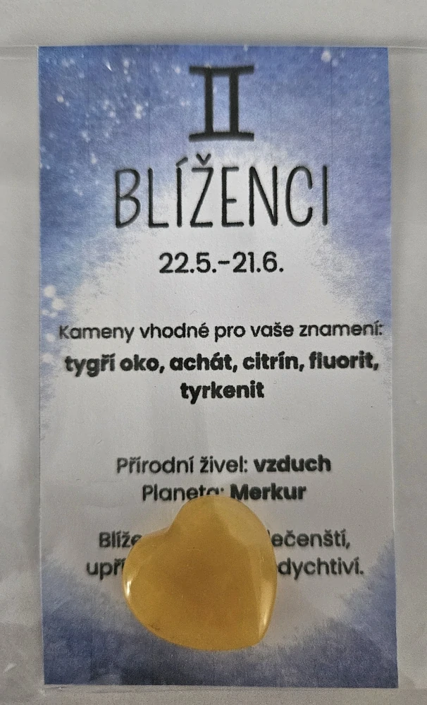 - Minerál ve tvaru srdce podle znamení zvěrokruhu - Blíženci - Citrín