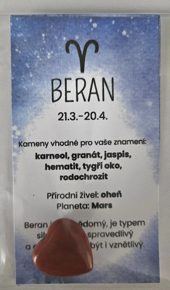 - Minerál ve tvaru srdce podle znamení zvěrokruhu - Beran - Jaspis červený