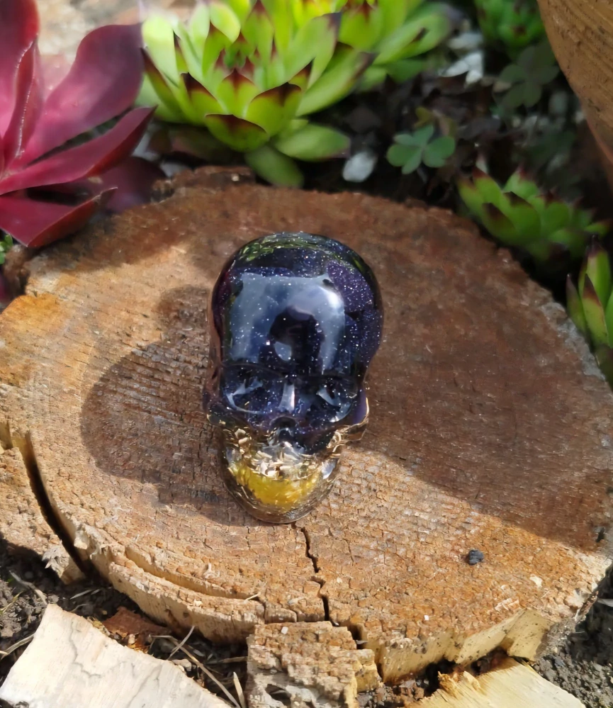 Orgonitová lebka s modrým avanturínem – klidná mysl, odvaha a vnitřní svoboda