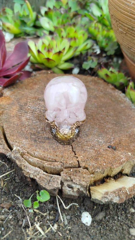 Růženín je kamenem srdce, sebelásky a jemného léčení. V této orgonitové lebce se pojí s čirým křišťálem a kovovými šponami, aby přinášel harmonii, podporu a otevřenost emocím. Ideální jako duchovní ochránce vašeho domova.