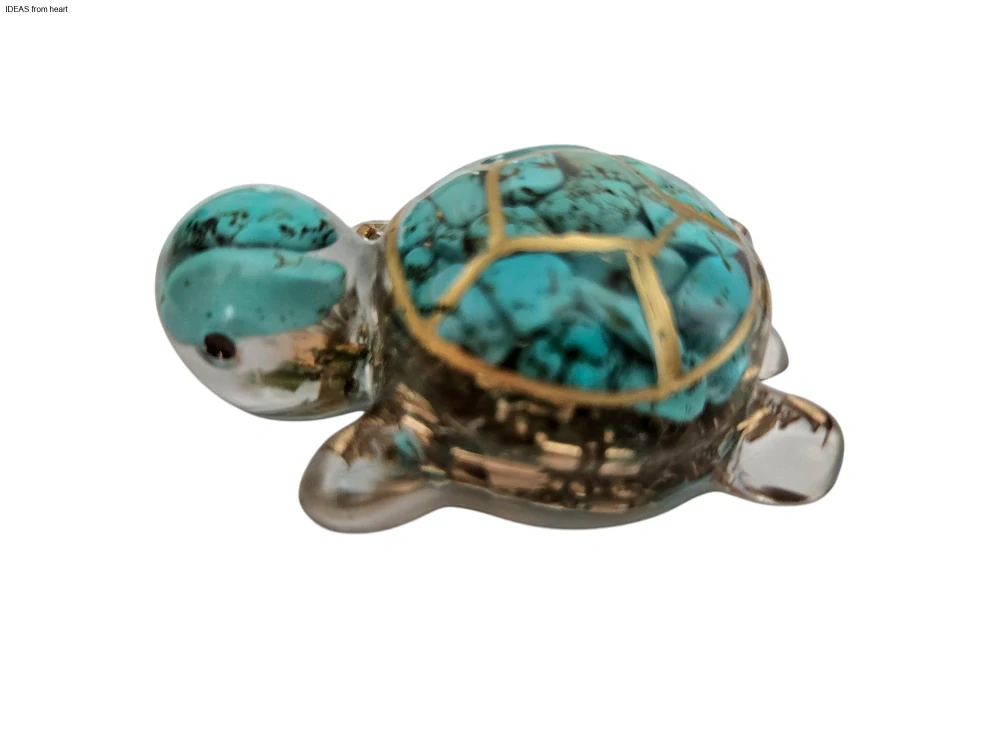 Želva je symbolem stability a vytrvalosti a v kombinaci minerálů ,měděných špon a křišťálové pryskyřice je dokonalým složením orgonitu , který přinese majiteli pozitivní energii .