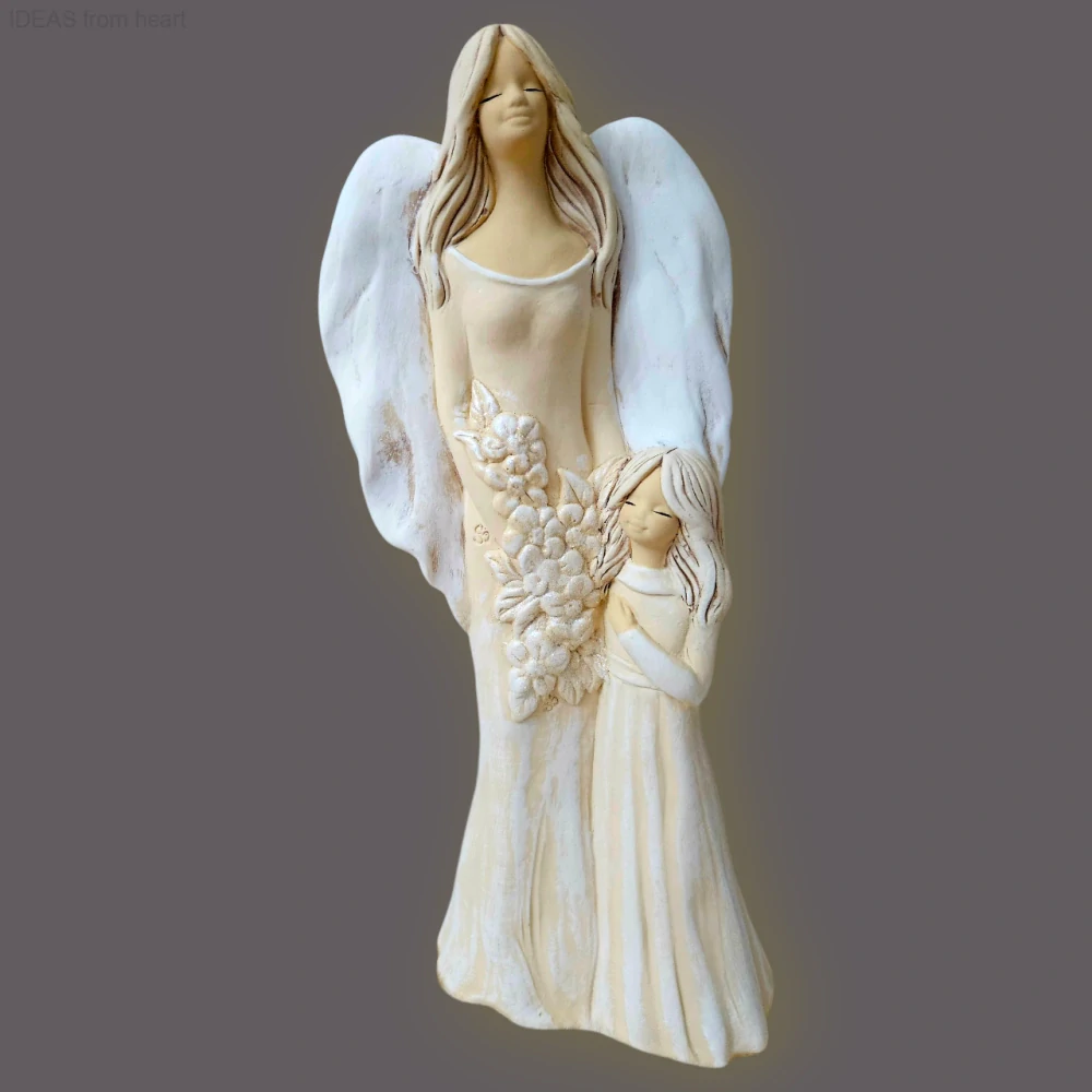 Sádrová andělka Sára s holčičkou v broskvové barvě symbolizuje lásku, ochranu a něhu mezi matkou a dítětem. Krásná dekorace, která vnese do domova teplo a pocit bezpečí.