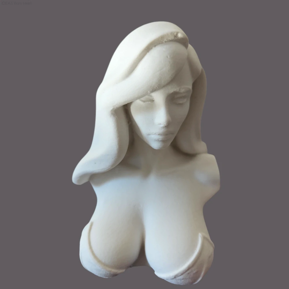Busta je vyrobena z materiálu Keraflott (keramická sádra), který je pevnější a odolnější než běžná sádra. Díky tomu je vhodná pro další úpravy, práci s materiály a dlouhodobější manipulaci při tvoření.