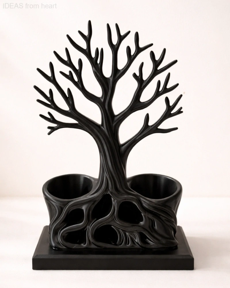Stojan je vyroben technologií 3D tisku z materiálu PETG, který je pevný, odolný a vhodný pro každodenní používání. Povrch má jemný lesk, který zvýrazňuje strukturu větví a dodává výrobku elegantní vzhled.