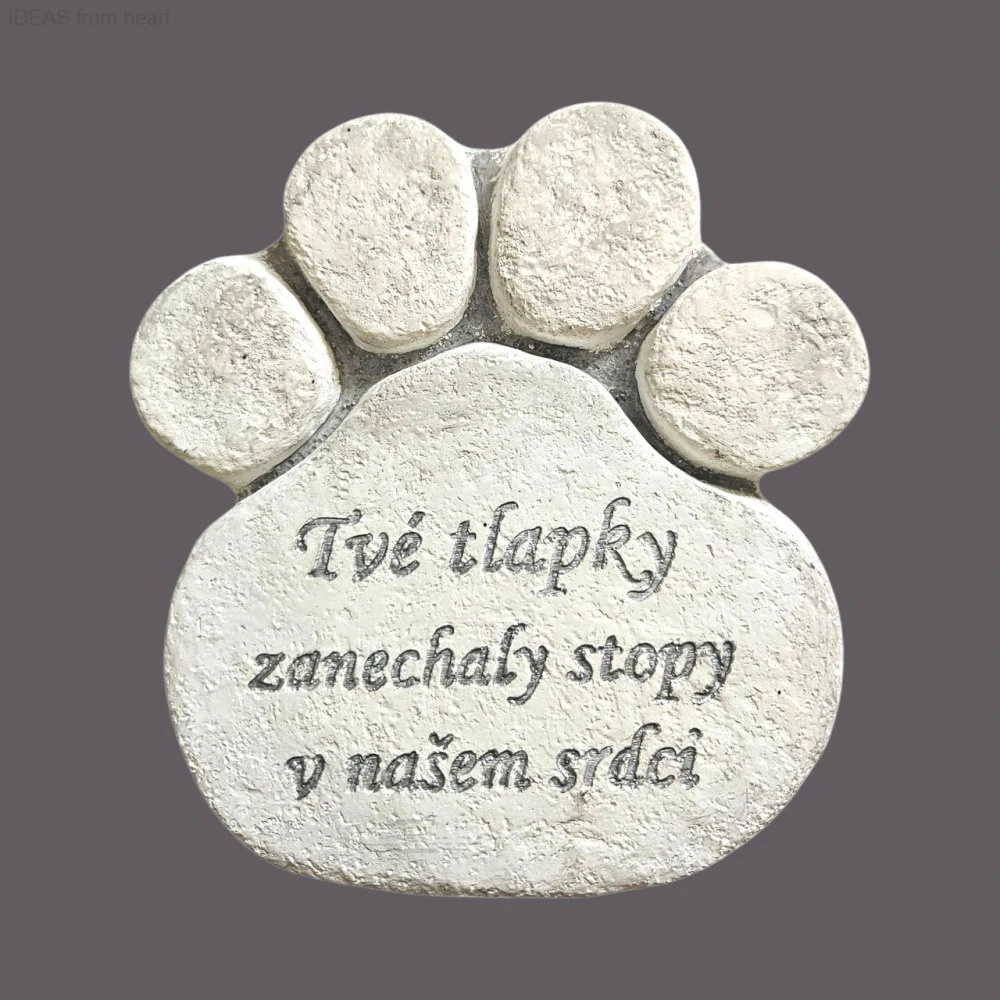 Vzpomínkový kámen pro mazlíčka - světlý, stříbrné písmo - Tvé tlapky zanechaly stopy v našem srdci